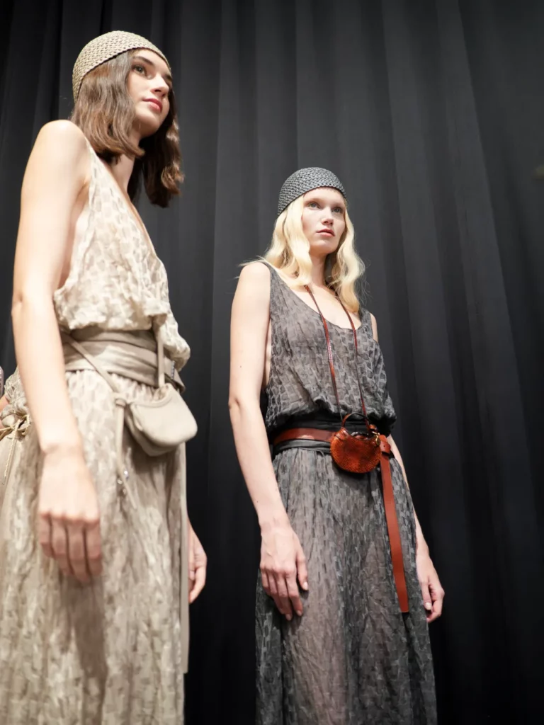 I veri protagonisti beauty della sfilata sono stati i capelli, curati da Roberta Bellazzi con il team The Agency Aldo Coppola. Le acconciature hanno interpretato il tema del ritorno con un approccio minimal e sofisticato. Linee morbide, texture fluide e ariose, volumi leggeri e naturali.